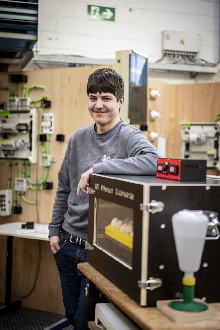 De leerlingen van de studierichting Elektrische installaties van het GO! Atheneum Oudenaarde, campus Bergstraat realiseren een innovatief project waarin ze hun technische kennis omzetten in praktijk. Ze bouwen een automatische broedmachine die het volledige broedproces van eieren ondersteunt.